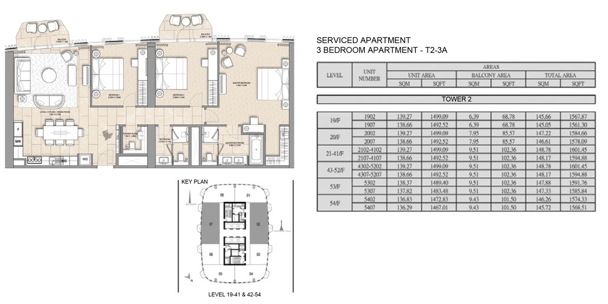 Units & Mix | Serviced hotel suites, serviced & residential apartments, penthouses. 1-bed, 2-bed, 3-bed, and “Sky Collection” 4-5 bed penthouses (in some sources) |